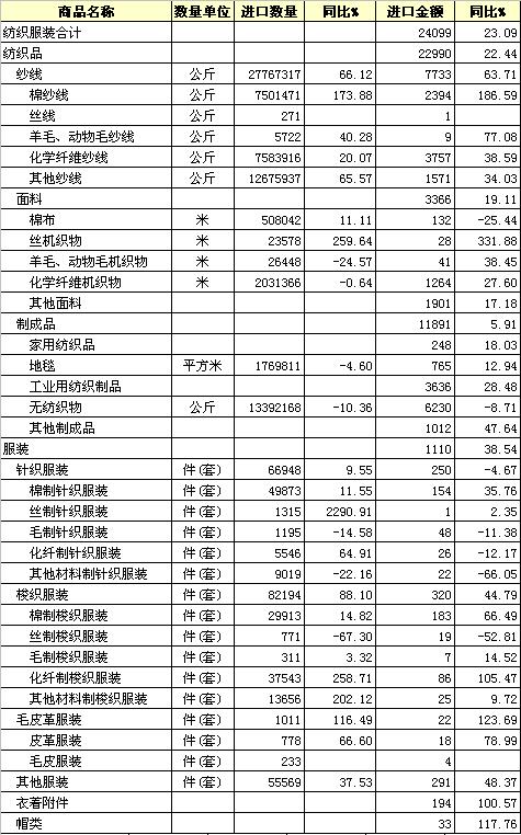 2008年1-12月我國紡織品服裝進出