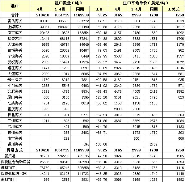 2011年4月各港口棉花進口及貿(mào)易方式統(tǒng)計表
