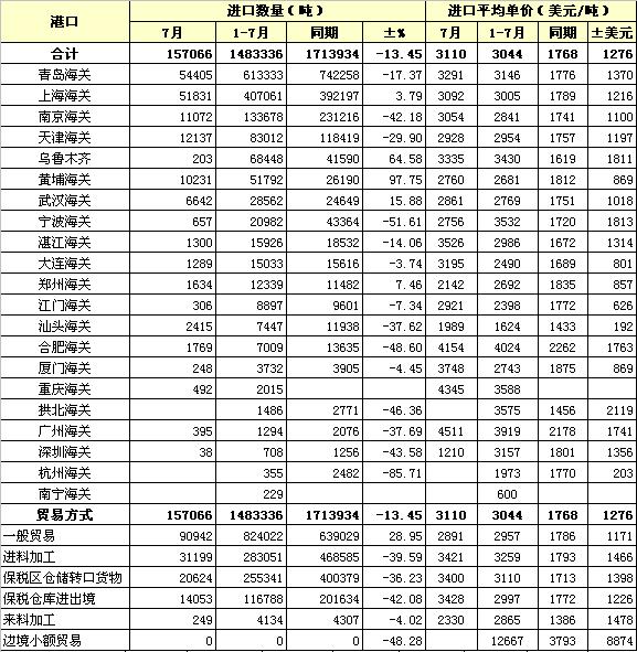 2011年7月各港口棉花進(jìn)口及貿(mào)易方式統(tǒng)計(jì)表