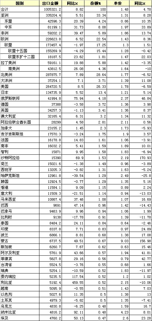 (金額:萬美元) 轉(zhuǎn)載本網(wǎng)專稿請注明:"本文轉(zhuǎn)自錦橋紡織網(wǎng)" |