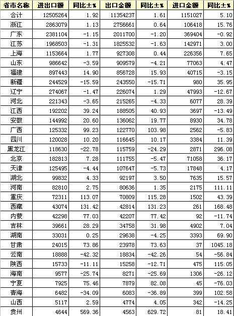錦橋紡織網(wǎng)—資訊頻道> 統(tǒng)計(jì)資料>正文 2012年6月全國紡織服裝進(jìn)出口分省市統(tǒng)計(jì)