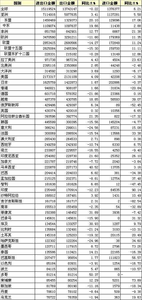2012年7月我國紡織品服裝進(jìn)出口國別統(tǒng)計(jì)