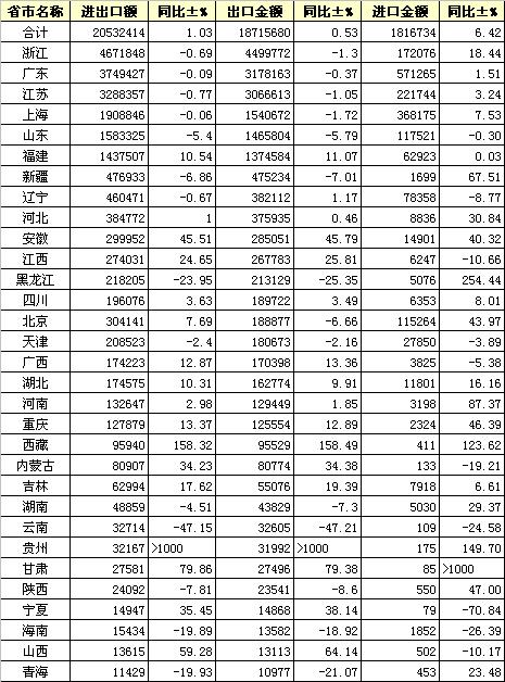 錦橋紡織網(wǎng)—資訊頻道> 統(tǒng)計(jì)資料>正文 2012年9月全國(guó)紡織服裝進(jìn)出口分省市統(tǒng)計(jì)