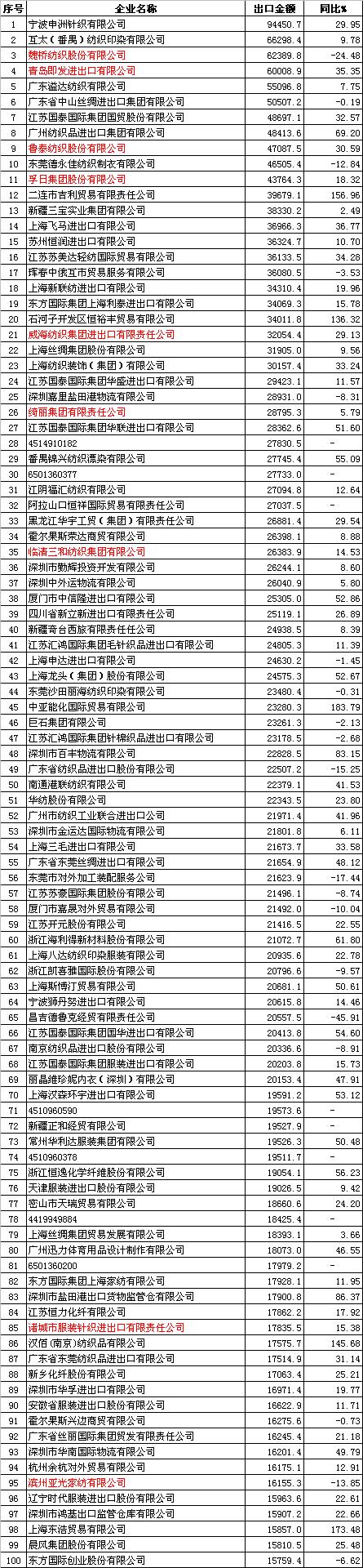 2011年1-12月中國紡織品服裝出口企業(yè)排名