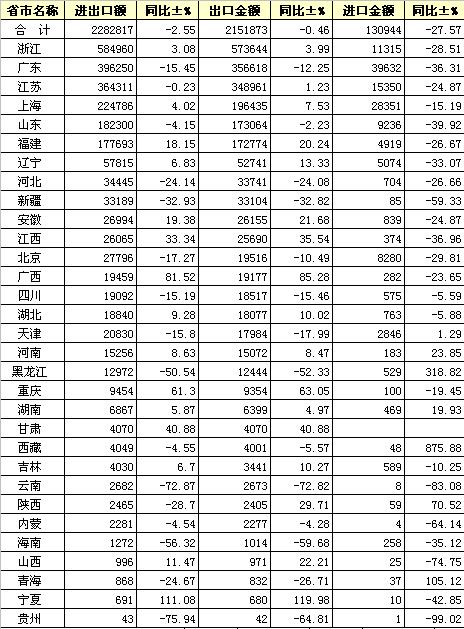 2012年1月全國(guó)紡織服裝進(jìn)出口分省市統(tǒng)計(jì)