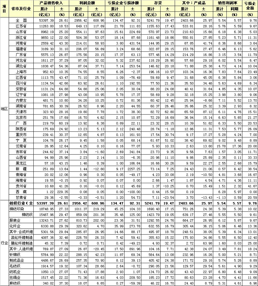 錦橋紡織網(wǎng)—資訊頻道> 統(tǒng)計資料>正文 2011年1-12月分行業(yè)、分地區(qū)主要經(jīng)濟指標