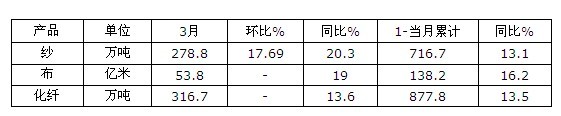 2012年3月我國(guó)主要紡織品產(chǎn)量