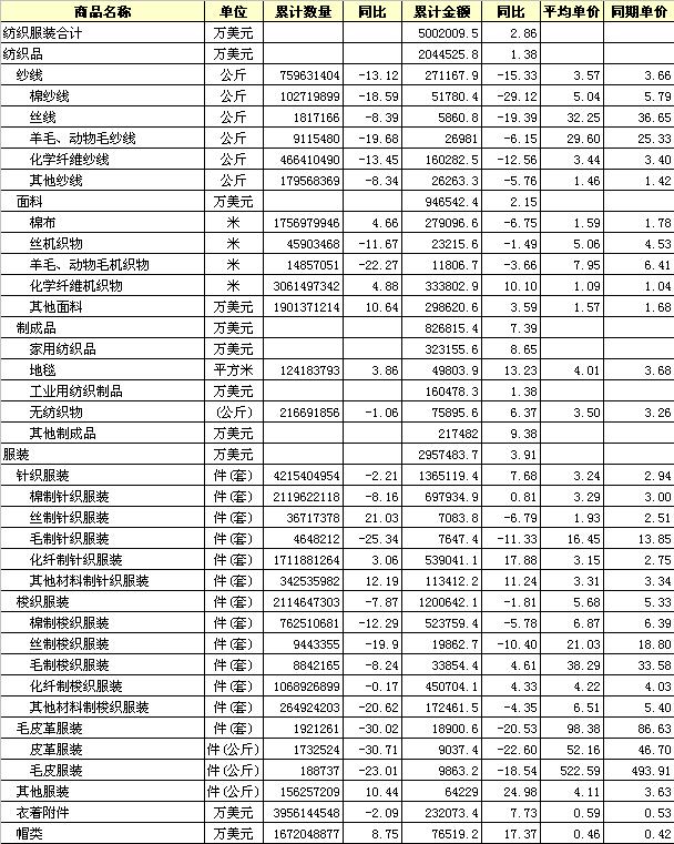 錦橋紡織網(wǎng)—資訊頻道> 統(tǒng)計(jì)資料>正文 2012年3月全國(guó)紡織服裝出口產(chǎn)品統(tǒng)計(jì)