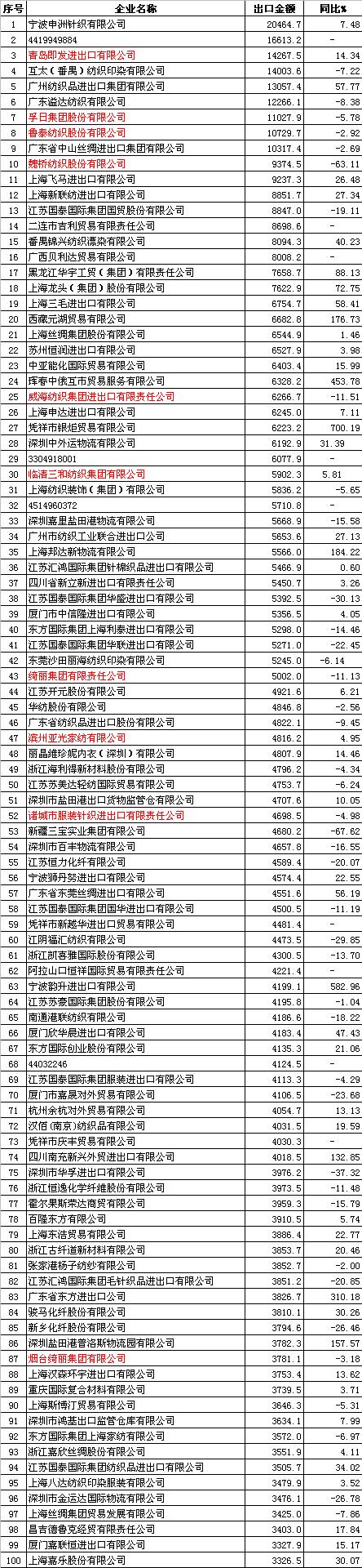 2012年1-3月中國紡織品服裝出口企業(yè)排名