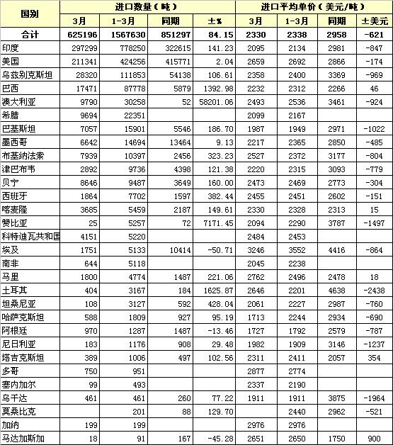2012年3月棉花進(jìn)口主要來(lái)源地區(qū)及國(guó)別