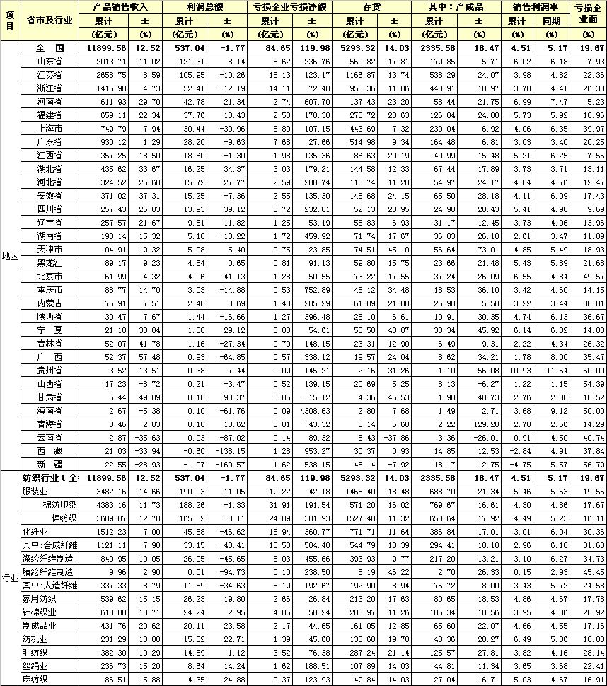 2012年1-3月紡織工業(yè)經(jīng)濟(jì)指標(biāo)完成