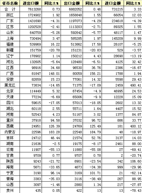 (按出口額排序,單位:萬美元)