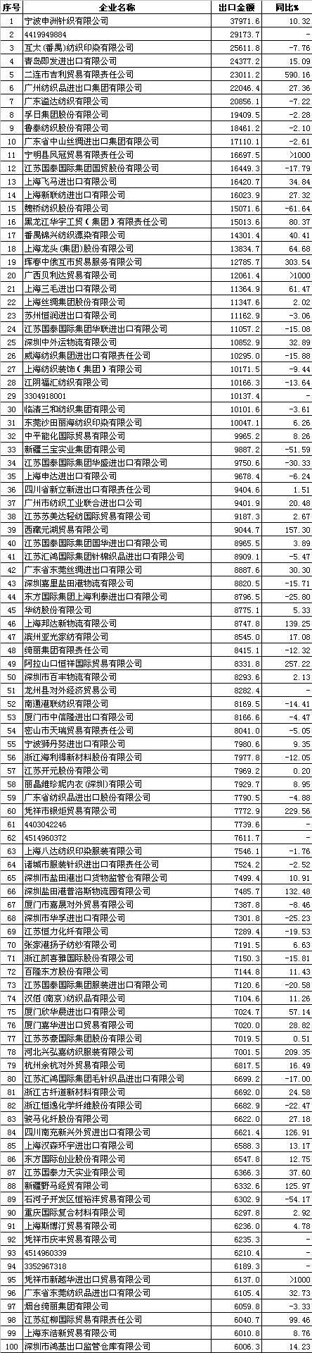 2012年1-5月中國紡織品服裝出口企業(yè)排名
