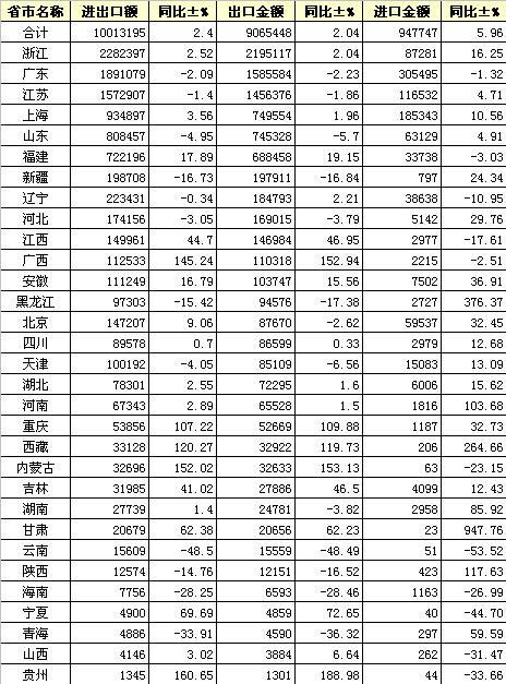 錦橋紡織網(wǎng)—資訊頻道> 統(tǒng)計(jì)資料>正文 2012年5月全國紡織服裝進(jìn)出口分省市統(tǒng)計(jì)