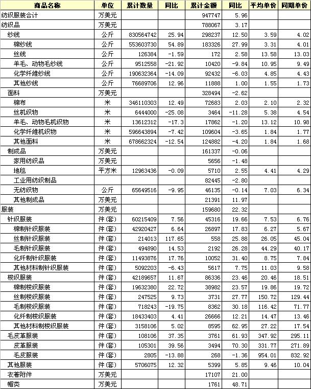 2012年5月全國(guó)紡織服裝出口產(chǎn)品統(tǒng)計(jì)