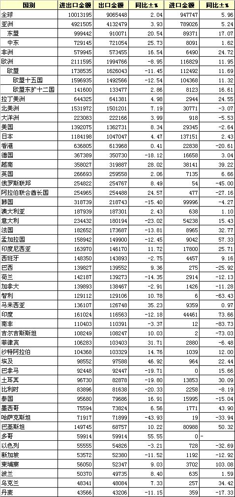 2012年5月我國紡織品服裝進(jìn)出口國別統(tǒng)計(jì)