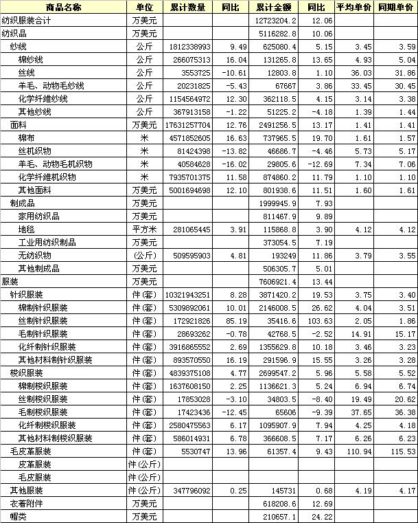 錦橋紡織網(wǎng)—資訊頻道> 統(tǒng)計資料>正文 2013年6月全國紡織服裝出口產(chǎn)品統(tǒng)計