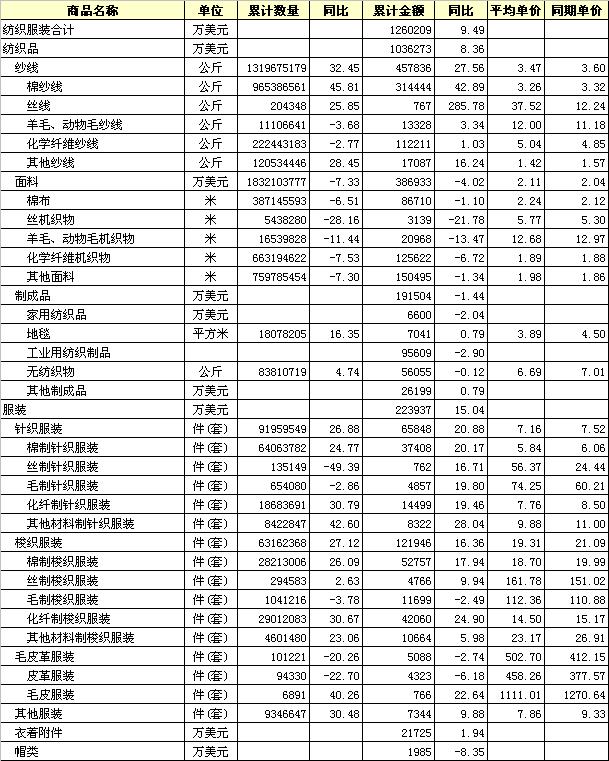 錦橋紡織網(wǎng)—資訊頻道> 統(tǒng)計(jì)資料>正文 2013年6月全國(guó)紡織服裝進(jìn)口產(chǎn)品統(tǒng)計(jì)