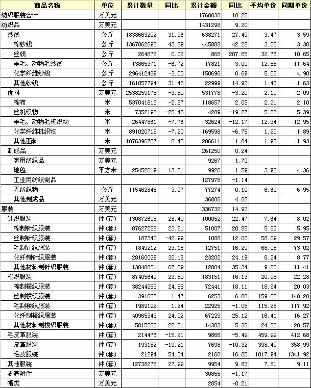 錦橋紡織網(wǎng)—資訊頻道> 統(tǒng)計(jì)資料>正文 2013年8月全國(guó)紡織服裝進(jìn)口產(chǎn)品統(tǒng)計(jì)