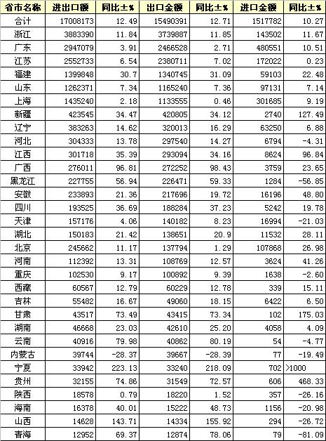 錦橋紡織網(wǎng)—資訊頻道> 統(tǒng)計資料>正文 2013年7月全國紡織服裝進(jìn)出口分省市統(tǒng)計