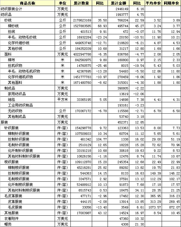 錦橋紡織網(wǎng)—資訊頻道> 統(tǒng)計(jì)資料>正文 2012年12月全國(guó)紡織服裝進(jìn)口產(chǎn)品統(tǒng)計(jì)