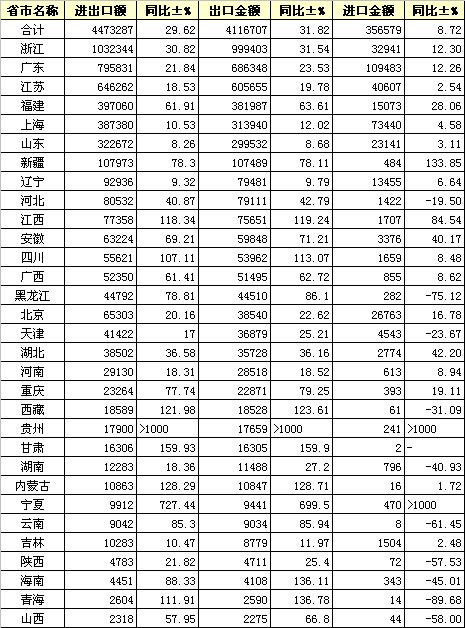 錦橋紡織網(wǎng)—資訊頻道> 統(tǒng)計(jì)資料>正文 2013年2月全國(guó)紡織服裝進(jìn)出口分省市統(tǒng)計(jì)