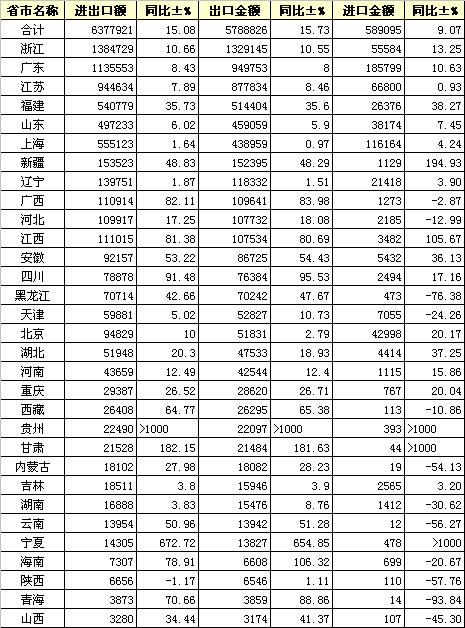 錦橋紡織網(wǎng)—資訊頻道> 統(tǒng)計資料>正文 2013年3月全國紡織服裝進(jìn)出口分省市統(tǒng)計
