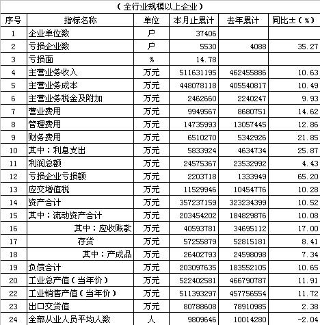 2012年1-11月紡織工業(yè)經(jīng)濟指標完成情況