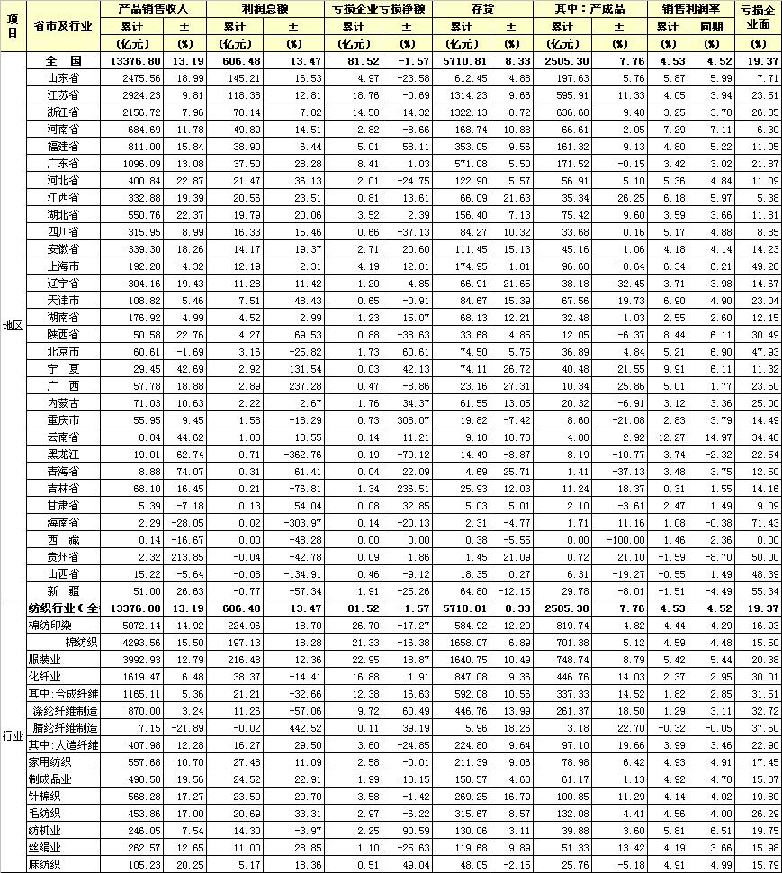 錦橋紡織網(wǎng)—資訊頻道> 統(tǒng)計資料>正文 2013年1-3月分行業(yè)地區(qū)主要經(jīng)濟指標