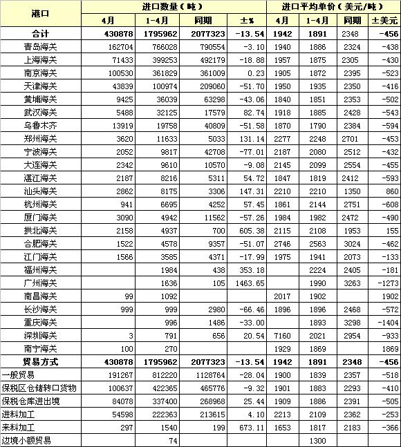 2013年4月各港口棉花進(jìn)口統(tǒng)計(jì)
