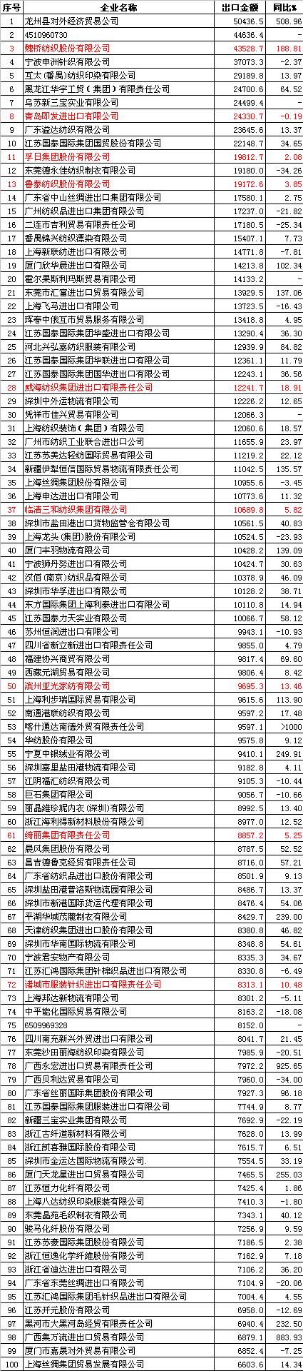 (金額:萬(wàn)美元) 更多紡織專業(yè)資訊,關(guān)注錦橋紡織網(wǎng)微信公眾號(hào)。微信搜:錦橋紡織網(wǎng) 轉(zhuǎn)載本網(wǎng)專稿請(qǐng)注明:"本文轉(zhuǎn)自錦橋紡織網(wǎng)" |