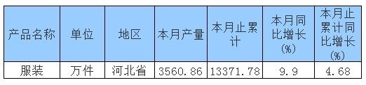 2014年1-4月河北服裝產(chǎn)量統(tǒng)計(jì)分析