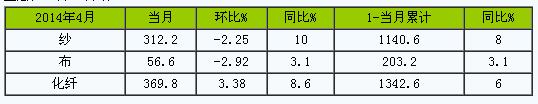 2014年4月主要紡織品產(chǎn)量統(tǒng)計(jì)