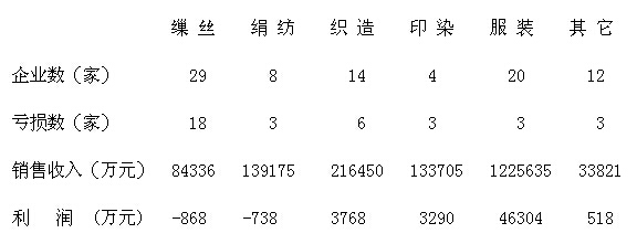 全省繅絲企業(yè)累計利潤額本月繼續(xù)出現(xiàn)虧損,累計虧損額增大;絹紡企業(yè)累計利潤本月繼續(xù)出現(xiàn)虧損,但虧損額有所減少;織造企業(yè)環(huán)比利潤額有所上升,累計利潤額比去年同期有較大上升;印染、服裝、其它企業(yè)累計利潤額同比有所下降,其中蠶絲被企業(yè)下降較大。