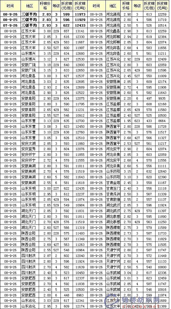 錦橋紡織網(wǎng)—資訊頻道> 錦橋視點(diǎn)>正文 棉花市場繼續(xù)低落 9月份棉價(jià)跌幅6成
