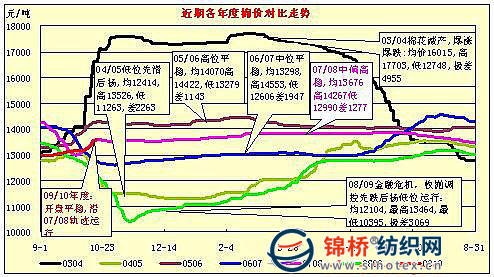 綜上情況,針對當(dāng)前面臨經(jīng)濟環(huán)境及紡企承受能力,筆者認為,本年度棉價將高于2008年,但是不宜大起大落,平穩(wěn)運行仍然將是主流,沿續(xù)2007/08年度棉價走勢較適宜。
