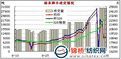 四是競價總體呈持續(xù)大幅上揚態(tài)勢,但是后幾個交易日競價趨于理性。剔除9月26日異常情況,在此之前成交價持續(xù)大幅上揚,此后競價理性回落。9月成交均價由17797元/噸上漲至9月25日的23890元/噸,累計上漲5983元,漲幅32.7%。分區(qū)間看,9月1-17日成交均價由17997元/噸逐日升至17日的19880元/噸,累計上漲1883元,漲幅10.5%。在此區(qū)間中,9月13日開始最高價突破2萬元,2萬元以上成交比例并且逐日提高至100%。9月19-25日區(qū)間,成交均價全線突破2萬元,均價由19880元/噸上漲至23890元/噸,上漲4010元,漲幅20.2%,其中最高成交價曾達27940元/噸。9月27日之后,隨著發(fā)改委關(guān)于棉花市場的電話電視會議召開和決定繼續(xù)追加40萬噸拋儲,競價逐步理性回落,4個交易日均價依次回落至21776元/噸、21514元/噸、18867元/噸、19038元/噸。
