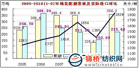 錦橋紡織網(wǎng)—資訊頻道> 錦橋視點>正文 1-9月我國棉花進口前高后低 進價高昂 進量縮減