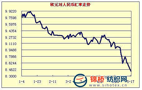 歐洲主權(quán)債務(wù)危機也使歐元大幅貶值,其他幣種匯率都發(fā)生較大幅度變化。今年以來,截止到5月17日,美元對歐元累計升值幅度達15.8%;人民幣對歐元的累計升值達15.9%。盡管人民幣對對美元維持相對平穩(wěn),但4月份來也升會值了0.02%。歐盟作為我們最主要的出口市場、最重要的貿(mào)易伙伴之一,在5個月中升值了15.8%,會給中國的出口商造成巨大的成本壓力,也會對貿(mào)易政策的調(diào)整產(chǎn)生影響。今年來主要貨幣匯率走勢圖如下: |