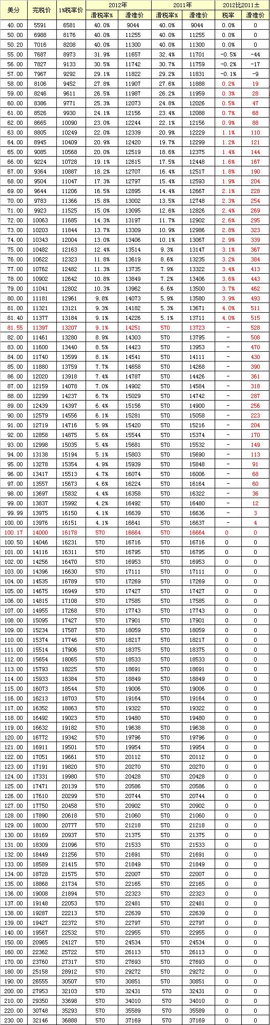 1、關(guān)稅完稅價(jià)由11.397元/千克,提高到14元/千克;從量稅率仍為0.570元/千克;即當(dāng)完稅價(jià)格≥14元/千克時(shí),按暫定從量稅率計(jì)算,該標(biāo)準(zhǔn)比2011年提高2.603元/千克;