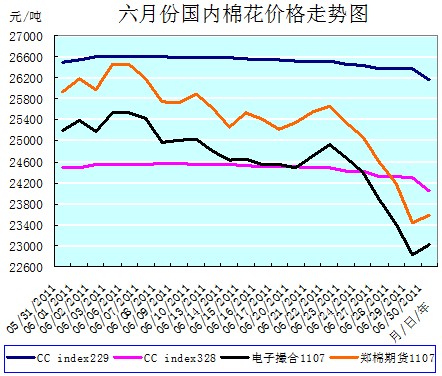2011年6月份,是在承載著我國傳統(tǒng)民俗節(jié)日——端午節(jié)“競舟祭賢”的歡快熱烈的氣氛中度過的,但是花紗布市場行情卻并未展現(xiàn)出節(jié)日的輕松與歡快,總體上是在沉悶的氛圍中,高位震蕩、弱勢盤整的運(yùn)行態(tài)勢。身處在新老棉花年度交替的過渡期,經(jīng)歷驚心動(dòng)魄的“過山車”式暴漲速跌的棉花價(jià)格,仍然面臨著3個(gè)多月來一直觀望、徘徊、迷茫的尷尬局面,呈現(xiàn)出“內(nèi)、外棉價(jià)走勢背離,外盤強(qiáng)內(nèi)盤弱、近期強(qiáng)遠(yuǎn)期弱”的運(yùn)行特點(diǎn)。而棉紡織企業(yè)受制于下游紡織服裝消費(fèi)需求的萎靡,背負(fù)著沉重的紗、布庫存積壓的包袱,承受著資金捉襟見肘的壓力,正步履蹣跚的行進(jìn)在“去庫存”的崎嶇道路上。其情其境,與當(dāng)年先賢屈原詩句的意境何其相似:路漫漫其修遠(yuǎn)兮,棉花上下在求索。