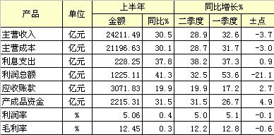 上半年利潤(rùn)總額1225.11億元,同比增長(zhǎng)41.3%。其中二季度增長(zhǎng)32.5%,比一季度增速下滑21.1個(gè)百分點(diǎn)。