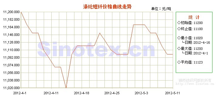 隨著五一假期結束,股市利好刺激原料PTA、MEG行情接連上漲,成本助推下,滌綸短纖廠家報價基本維持,但商談重心震蕩趨上,逐步接近報價,江浙市場直紡半光滌綸短纖1.4D*38mm于5月3日(上周四)小幅探漲至11170元/噸之后盤穩(wěn)。但從5月8日(周二)開始國內(nèi)滌綸短纖市場行情弱勢下滑,陰跌氣氛濃厚,廠家報價雖多維穩(wěn),但實際商談優(yōu)惠加大,成交重心持續(xù)回落。法國大選的消息刺激上周末原油價格跌破100美元,市場基本面偏弱,上游原料隨勢下挫,成本支撐不力,下游紗線需求淡穩(wěn),買盤仍顯不足,市場心態(tài)偏空。滌綸短纖企業(yè)利潤成本倒掛,現(xiàn)金流壓力增大。當前,滌短行業(yè)的開工負荷約在七成水平,企業(yè)庫存一周左右水平。江浙市場直紡半光滌綸短纖1.4D*38mm小幅回落至五一之前的11100元/噸的價位。