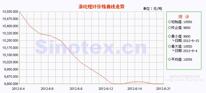 2012年6月份第三周(6.18-6.22),滌綸短纖穩(wěn)中小幅探漲后回落,市場報價趨穩(wěn)。原油依舊震蕩下滑,聚酯原料價格止?jié)q向穩(wěn)。下游企業(yè)詢盤略增,市場買盤略有恢復(fù)。當(dāng)前,國內(nèi)主流市場1.4D直紡滌綸短纖送到成交報價為9850-9950元/噸(現(xiàn)款或承兌),較上周下降100元/噸。