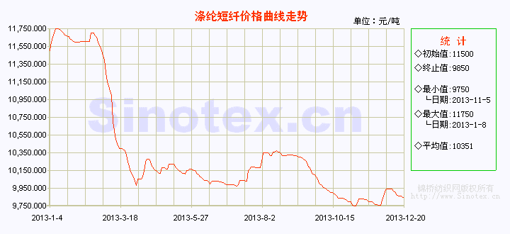 【錦橋紡織網(wǎng)專(zhuān)稿】本周(12.16-20),滌綸短纖弱勢(shì)整理,累計(jì)擴(kuò)幅續(xù)跌。持續(xù)清淡,觀望僵持為主。廠家報(bào)價(jià)大穩(wěn)小動(dòng),詢(xún)盤(pán)氣氛清淡。下游需求不振,企業(yè)信心不足,維持小單剛需補(bǔ)貨節(jié)奏,無(wú)大量采購(gòu)意愿。后期滌綸短纖廠家有意提價(jià),無(wú)奈需求方面不給力。下游缺乏消息指引,加之部分長(zhǎng)絲廠家低價(jià)拋貨回籠資金影響,聚酯大盤(pán)依舊萎靡不振。雖美聯(lián)儲(chǔ)宣布縮減QE規(guī)模,油價(jià)上漲,亦未能帶動(dòng)聚酯大盤(pán)氣氛回升。12月20日,1.4Dx38mm滌綸短纖價(jià)格運(yùn)行在9850元/噸(比當(dāng)日國(guó)內(nèi)3128B級(jí)棉花現(xiàn)貨價(jià)格低9670元/噸,價(jià)差擴(kuò)大),本周累計(jì)下跌50元/噸,跌幅0.51%。