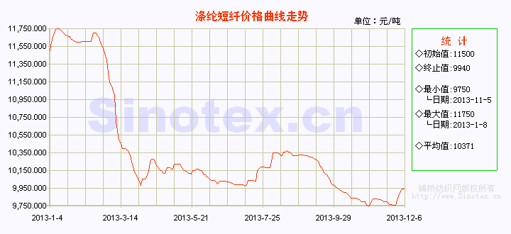 【錦橋紡織網(wǎng)專稿】本周(12.2-6),滌綸短纖在多重利好帶動下,止跌持續(xù)反彈,成交放量,庫存壓力得以釋放。受到11月29日江陰滌綸短纖聯(lián)誼會關(guān)于主流滌綸短纖出廠報價不低于9850元/噸的倡議的鼓勵,自上周末開始,前期報價相對偏低的滌綸短纖廠家普遍上調(diào)報價,滌綸短纖整體交投氣氛較活躍,成交重心有不同幅度上抬。至周二時,滌綸短纖報價仍有補漲,但交投氣氛有所回落。而周三受到隔夜原油大漲提振,PTA期貨漲勢較好,滌綸短纖廠家再度漲價意愿強烈。先是江蘇滌綸短纖廠家報價率先集體上漲,之后浙江、福建滌綸短纖廠家紛紛跟進,廠家報價普漲50-100元/噸,1.4D滌綸短纖廠家報價多數(shù)高于9900元/噸出廠,成交放量。周四和周五二日,滌綸短纖回歸平靜,多平報觀望,價格重心橫盤整理,高價成交稀少。經(jīng)過一周入市采購,滌綸短纖廠家?guī)齑娲罅哭D(zhuǎn)移至下游紗廠,庫存壓力得以有效緩解。12月6日,1.4Dx38mm滌綸短纖價格運行在9940元/噸(比當日國內(nèi)3128B級棉花現(xiàn)貨價格低9587元/噸,價差縮小),本周累計上漲185元/噸,漲幅1.90%。
