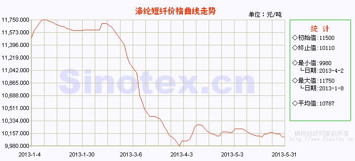 本周(5.27-5.31)滌綸短纖再度止?jié)q回落。上游原料市場(chǎng)偏弱調(diào)整,下游紗線廠家謹(jǐn)慎觀望,用戶剛需支撐下,陸續(xù)補(bǔ)貨,滌短市場(chǎng)心態(tài)不佳。市場(chǎng)成交氣氛較弱,市場(chǎng)報(bào)價(jià)基本持平,但成交重心卻出現(xiàn)陰跌,成交量保持上周水平。當(dāng)前滌綸短纖企業(yè)產(chǎn)銷一般,多數(shù)在50-70%,庫(kù)存量在五天到半個(gè)月之間。實(shí)際成交時(shí)優(yōu)惠促銷措施普遍,滌綸短纖行業(yè)的開(kāi)工率保持平穩(wěn),預(yù)計(jì)后市變化不大。周五,1.4D×38mm滌綸短纖市場(chǎng)價(jià)格運(yùn)行在10110元/噸(比當(dāng)日國(guó)內(nèi)328級(jí)棉花現(xiàn)貨價(jià)格低9226元/噸),本周累計(jì)下跌60元/噸,跌幅0.59%。