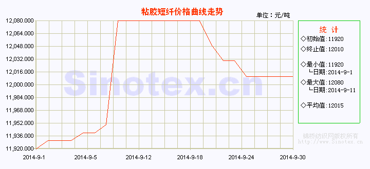 【錦橋紡織網(wǎng)專(zhuān)稿】2014年9月,粘膠短纖價(jià)格累計(jì)續(xù)漲,經(jīng)歷一個(gè)前漲中穩(wěn)后回調(diào)的過(guò)程。上旬,粘膠短纖價(jià)格在多種因素推動(dòng)下堅(jiān)挺上揚(yáng),9月1日、2日、5日和10日,價(jià)格累計(jì)上漲160元/噸,漲至12080元/噸的本月最高價(jià),漲幅1.34%。中旬,粘膠短纖市場(chǎng)價(jià)格向下游傳導(dǎo)遇阻,以平穩(wěn)運(yùn)行為主。下旬,粘膠短纖產(chǎn)銷(xiāo)較弱,庫(kù)存上升,致價(jià)格高位回調(diào)。23、24和26三日價(jià)格累計(jì)回調(diào)70元/噸至12010元/噸,降幅0.58%。9月全月統(tǒng)計(jì):全月累計(jì)共上漲100元/噸,漲幅0.84%,月末價(jià)格運(yùn)行在12010元/噸,價(jià)格低于中國(guó)棉花價(jià)格指數(shù)CCindex328(現(xiàn)貨價(jià)格)3368元/噸,價(jià)差比上月超大幅縮小1714元/噸(棉花新政出臺(tái)后棉價(jià)快速回落是造成二者價(jià)差大幅縮小的主要原因)。