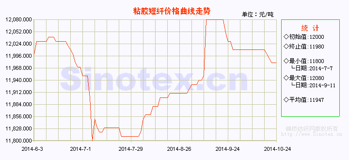 【錦橋紡織網(wǎng)專稿】2014年10月第4周,粘膠短纖市場價格弱勢整理,市場表現(xiàn)疲軟。上游棉短絨市場價格受到新絨上市的沖擊震蕩下滑,進口溶解漿成交重心下移,粘膠短纖成本支撐依然偏弱;同時,臨近月末,粘膠短纖廠家資金緊張,出現(xiàn)部分套現(xiàn)操作,引起價格波動;再加上市場預期偏弱,下游采購原料積極性偏低,造成粘膠短纖部分大單商談空間明顯松動。市場中端商談重心有百元左右下移,較高成交堅持在12000元/噸附近,略低商談在11800-11900元/噸,下游剛需補貨。高端廠家相對平穩(wěn),主流廠家商談執(zhí)行維持在12200-12300元,但出貨也受影響有所走緩,產(chǎn)銷基本維持平衡。10月23日,粘膠長絲、短纖行業(yè)會議在吳江召開,業(yè)內(nèi)部分企業(yè)出席。粘膠短纖廠家就近期行情走勢做了系統(tǒng)分析,普遍認為目前行業(yè)庫存維持低位,運行情況平穩(wěn),部分廠家表示后期價格將堅挺在12300-12500元/噸位置。周末統(tǒng)計:粘膠短纖價格累計下降30元/噸,降幅0.25%,周末運行在11980元/噸,價格低于中國棉花價格指數(shù)CCindex328(現(xiàn)貨價格)2788元/噸,價差較上中旬微幅擴大13元/噸。