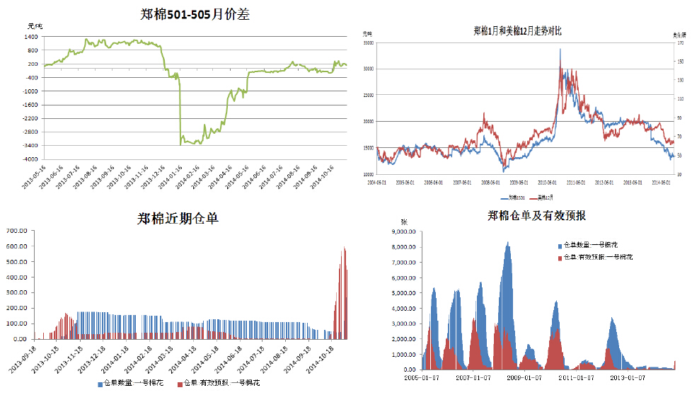 鄭棉反彈收陽。今日鄭棉501平開拉升,觸及10日線后回落,全天窄幅震蕩;1505走勢較強(qiáng),持倉大幅增加。1-5價(jià)差收窄至150元/噸。今日商品股市普遍大幅反彈,鄭棉小幅反彈,技術(shù)面短期下跌動(dòng)力有限,但尚未有反轉(zhuǎn)信號(hào)